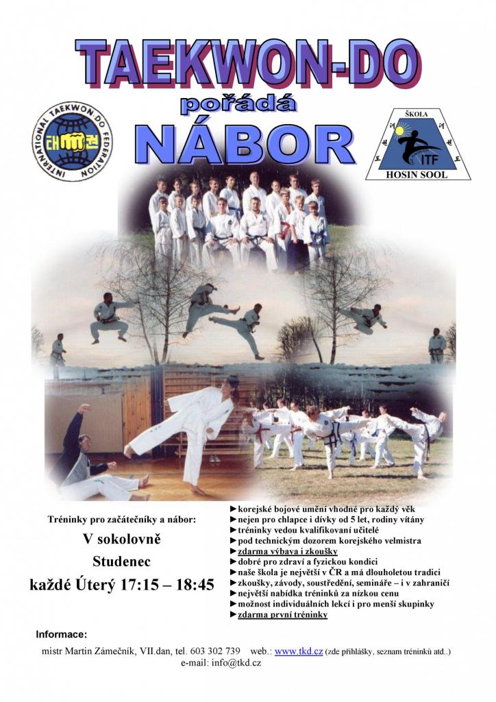 Nábor do tohoto korejského bojového umění každé úterý ve Studenci. Více info v přiložené pozvánce.