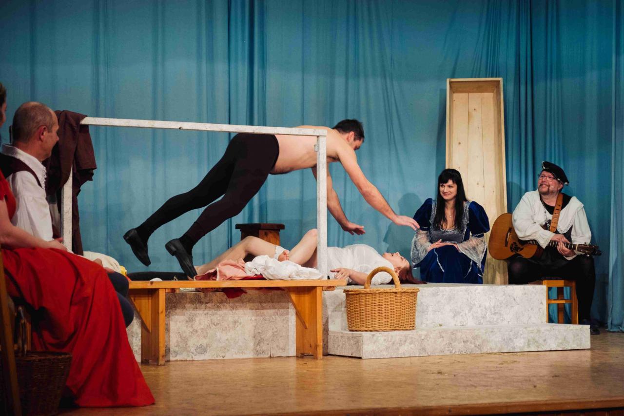 Divadelní hru Mor, kterou na námět Boccacciova Dekameronu napsal brněnský dramatik Karel Tachovský, sehrál na koněšínském jevišti Koněšínský ochotnický spolek.