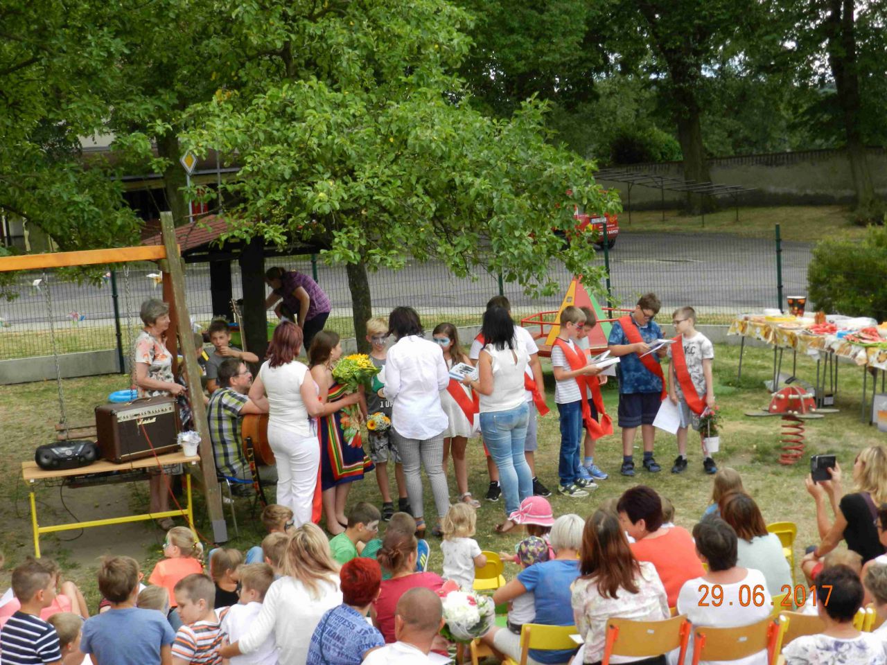Ve čtvrtek 29. 6. 2017 se děti oficiálně loučily se školním rokem 2016/2017. Nechyběly písničky, tanečky, ale i slzičky dojetí rodičů, prarodičů, učitelů, dětí a ani ty moje. Krásné prázdniny a budu se na vás těšit při zahájení nového školního roku 2017/2018.
