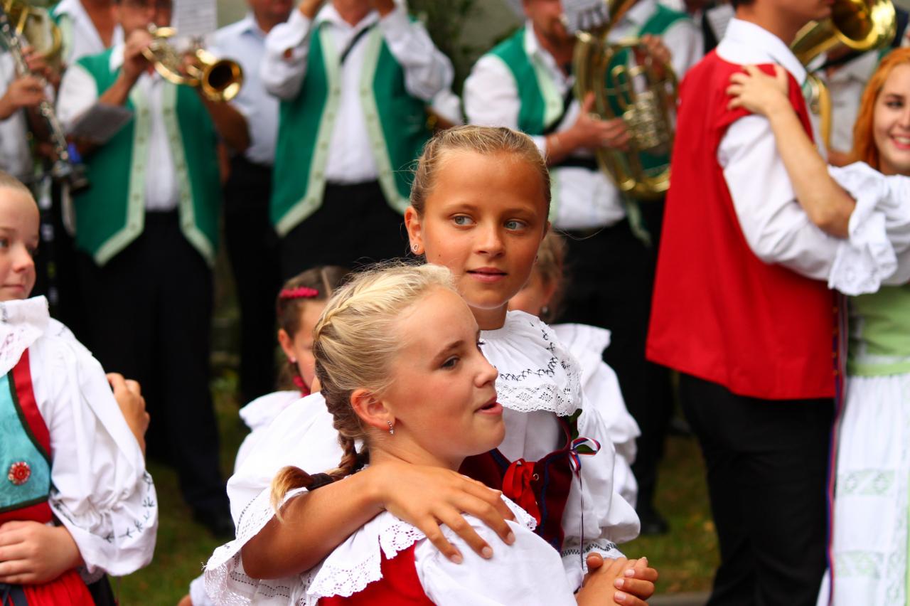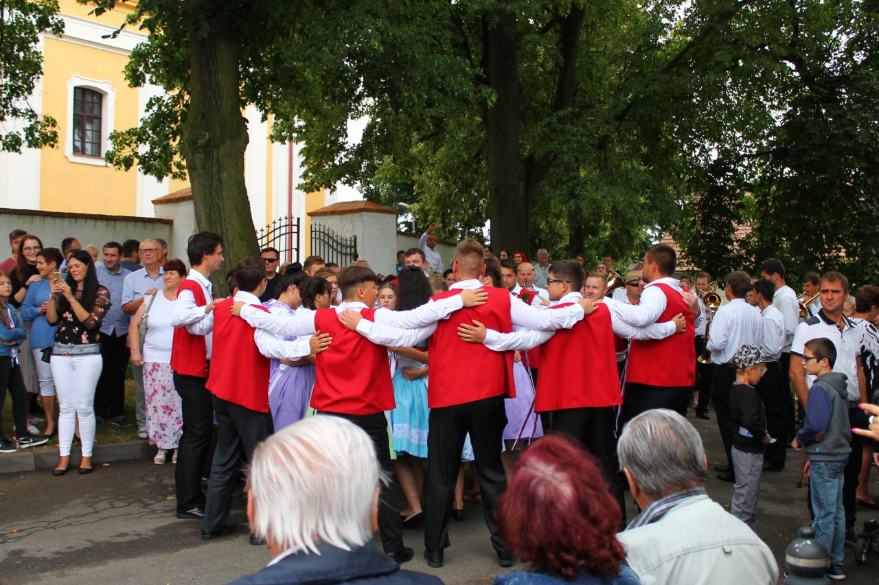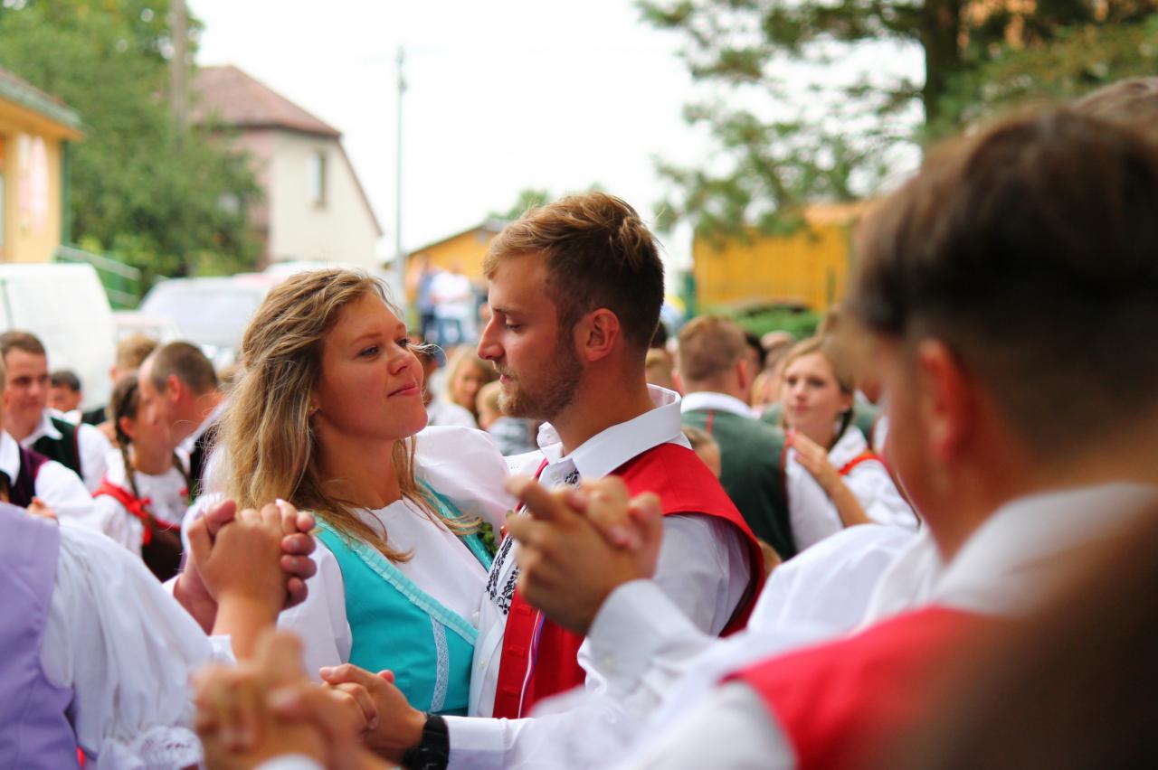V neděli tancovali stárci Koněšína s Studence u kostela.
