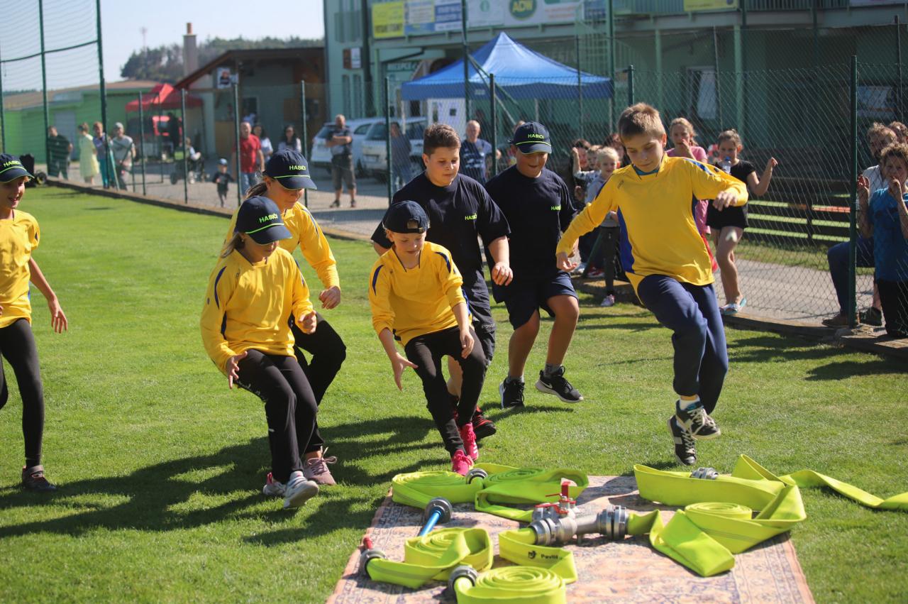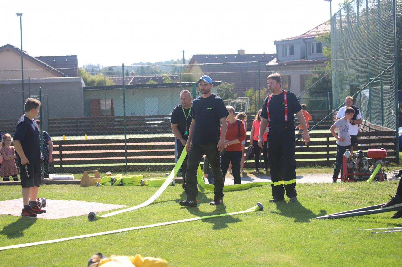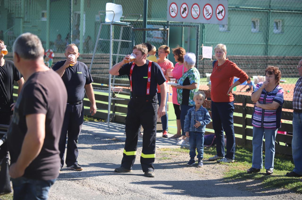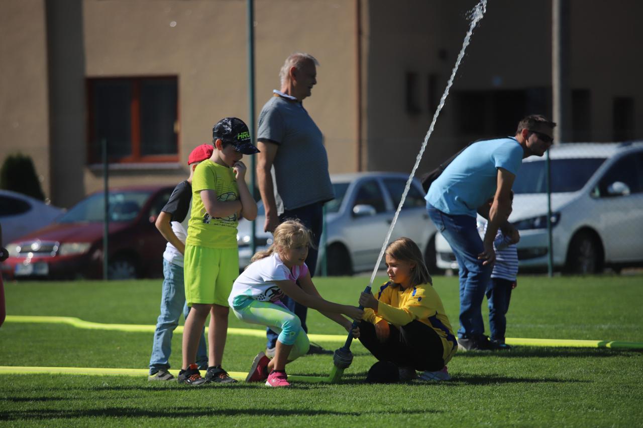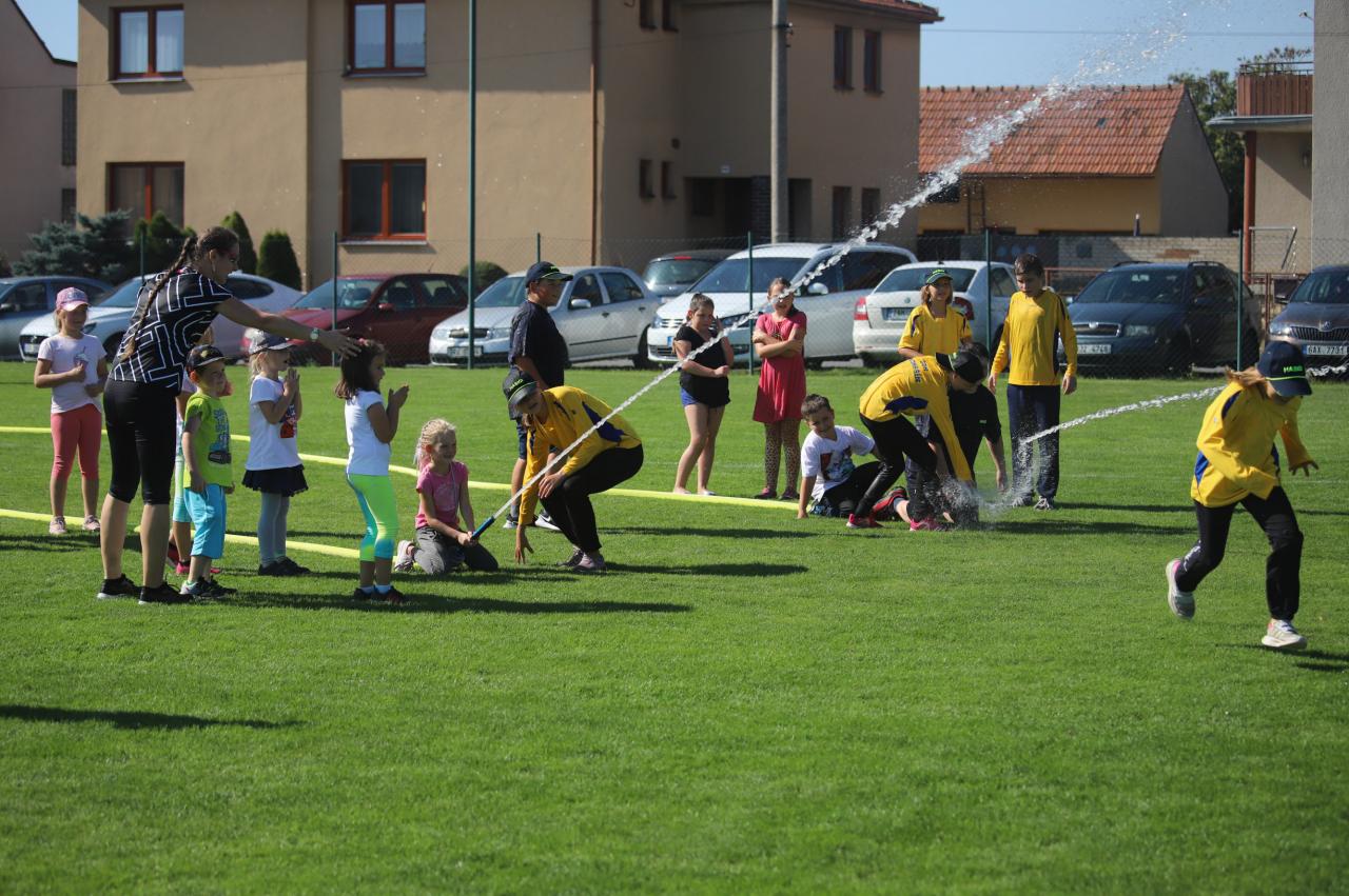 Oslavy byly zahájeny na fotbalovém hřišti, kde exhibiční fotbalové utkání sehrály místní děti. Poté proběhly hasičské útoky v několika kategoriích, dospělé kategorie s mírným zvýšením obtížnosti :) Dále si mohly děti na hřišti s umělým povrchem zasoutěžit v připravených hrách od msítní školy. Kromě klasických nápojů si na hřišti mohli lidé zakoupit domácí koláčky od místních žen. Poté se lidé rozešli do několika stanovišť:
