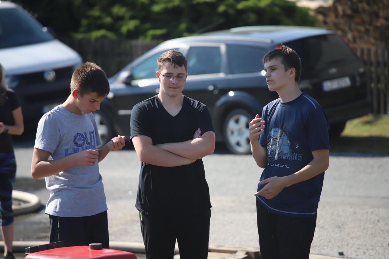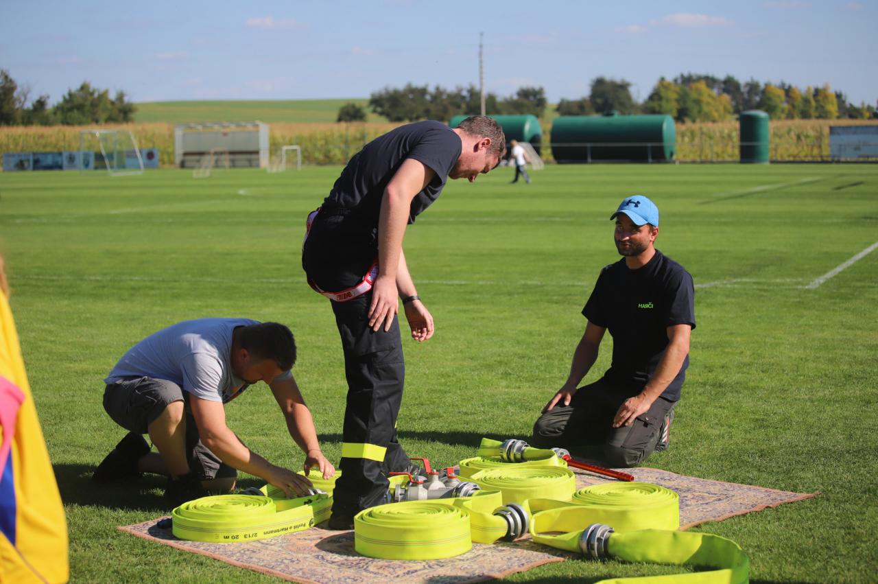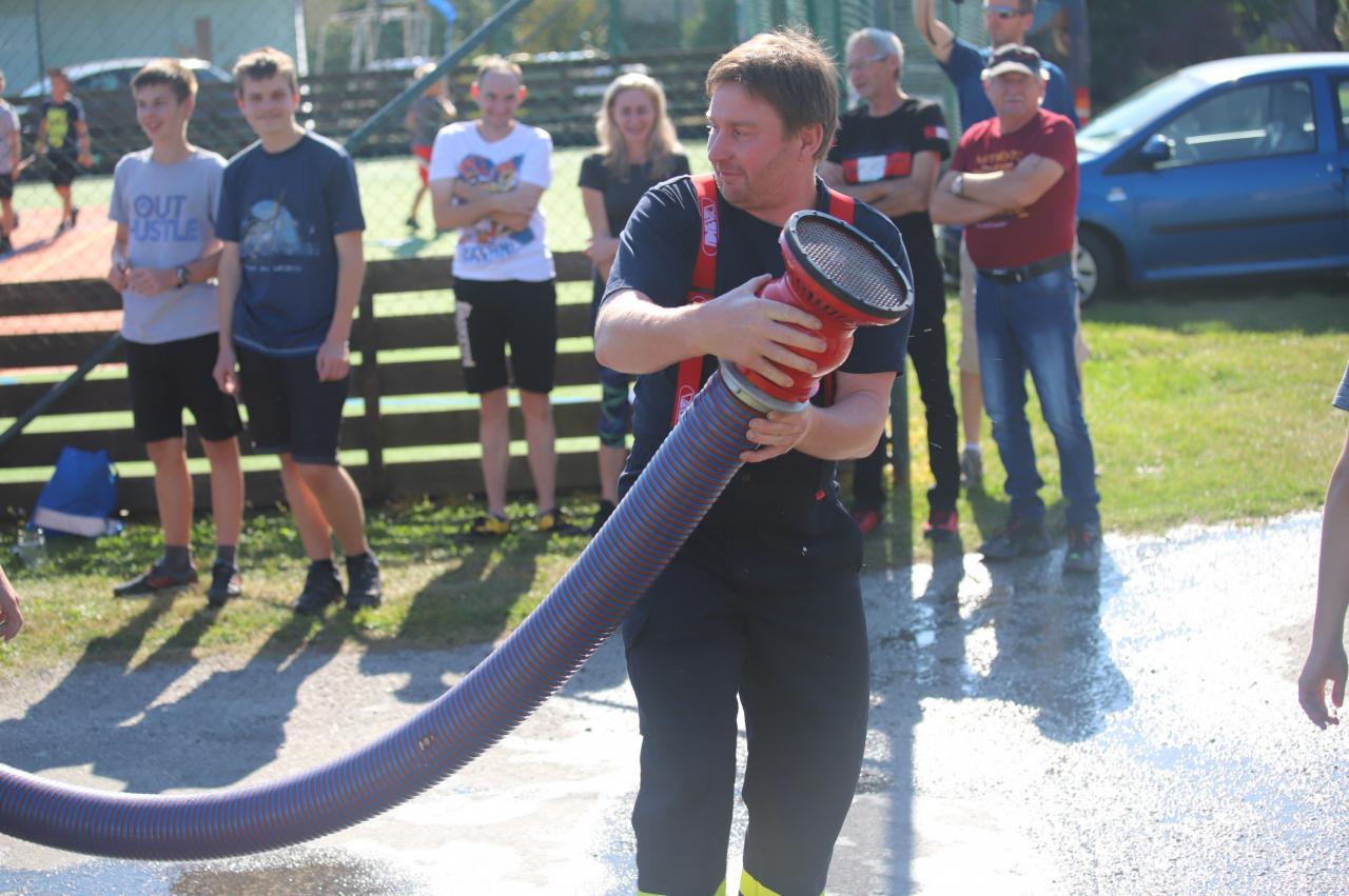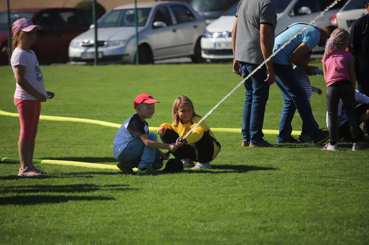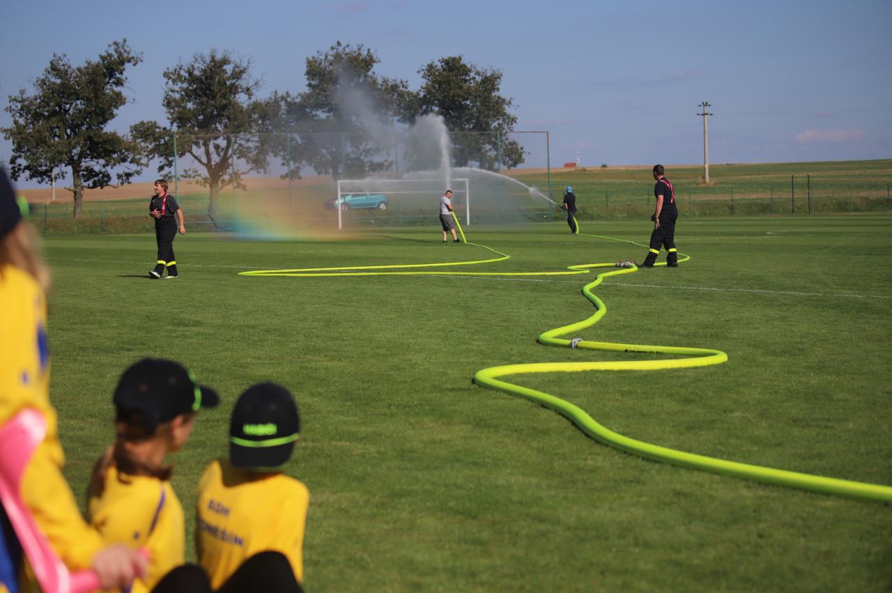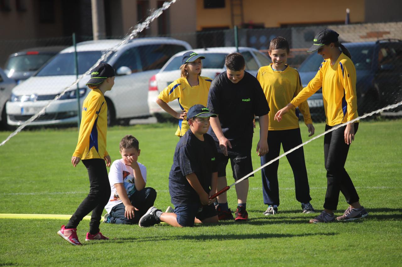 Oslavy byly zahájeny na fotbalovém hřišti, kde exhibiční fotbalové utkání sehrály místní děti. Poté proběhly hasičské útoky v několika kategoriích, dospělé kategorie s mírným zvýšením obtížnosti :) Dále si mohly děti na hřišti s umělým povrchem zasoutěžit v připravených hrách od msítní školy. Kromě klasických nápojů si na hřišti mohli lidé zakoupit domácí koláčky od místních žen. Poté se lidé rozešli do několika stanovišť: