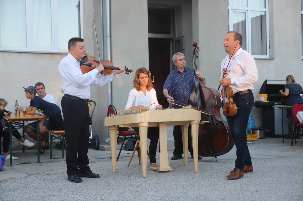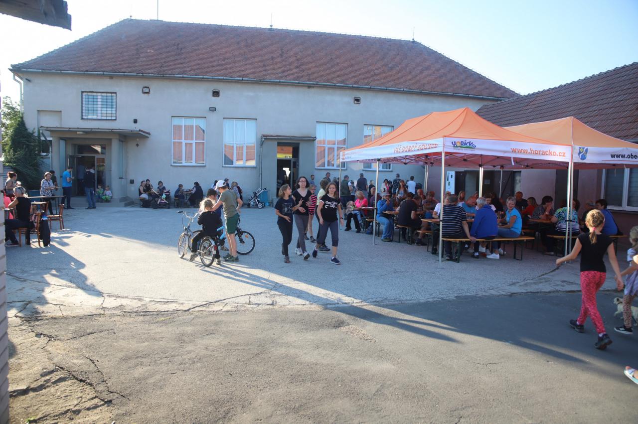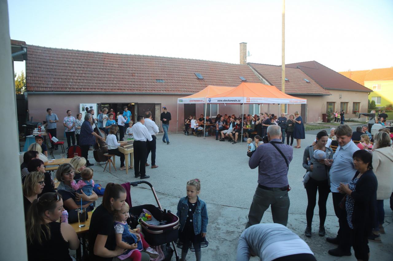 Závěr dne se odehrál před kulturním domem, kde se díky krásnému počasí sešlo spoustu lidí. K jídlu byli připraveni grilovaní pstruzi a klobásy. Pivo z místní Hospůdky Na Kopci a víno s burčákem z vinotéky Ganymed. K poslechu nejprve zahráli místní mladí muzikanti a Klokočí. Po nich se předvedla cimbálovka Fjertůšek a na závěr se akce přesunula kvůli chladnému večeru dovnitř, kde měli aparaturu nachystanou koněšínští muzikanti různých žánrů.